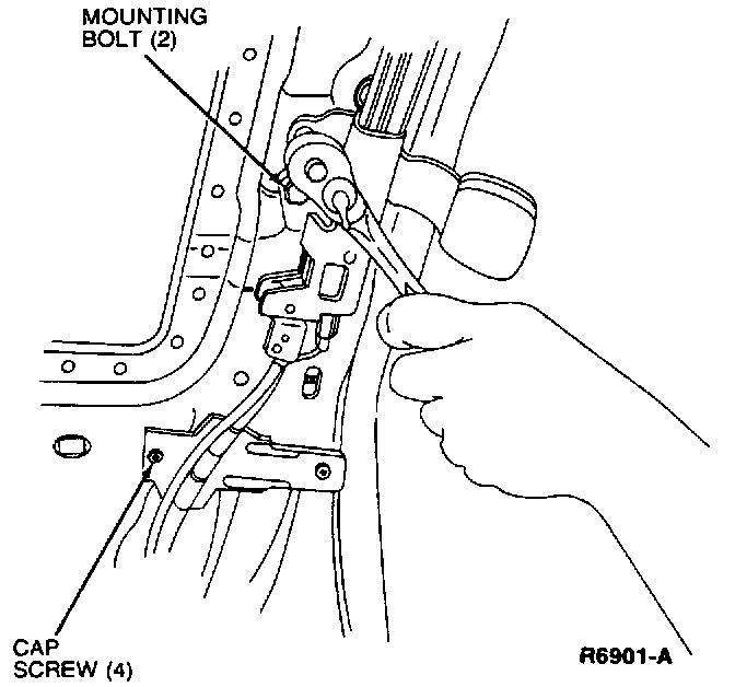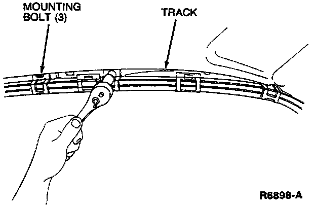 1. Position the motor and track assembly and install the three upper track mounting bolts. Tighten the bolts to 38-78 Nm (28-58 ft lbs).
