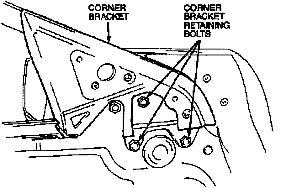 5. Remove the three bolts retaining the corner bracket. Remove the corner bracket.