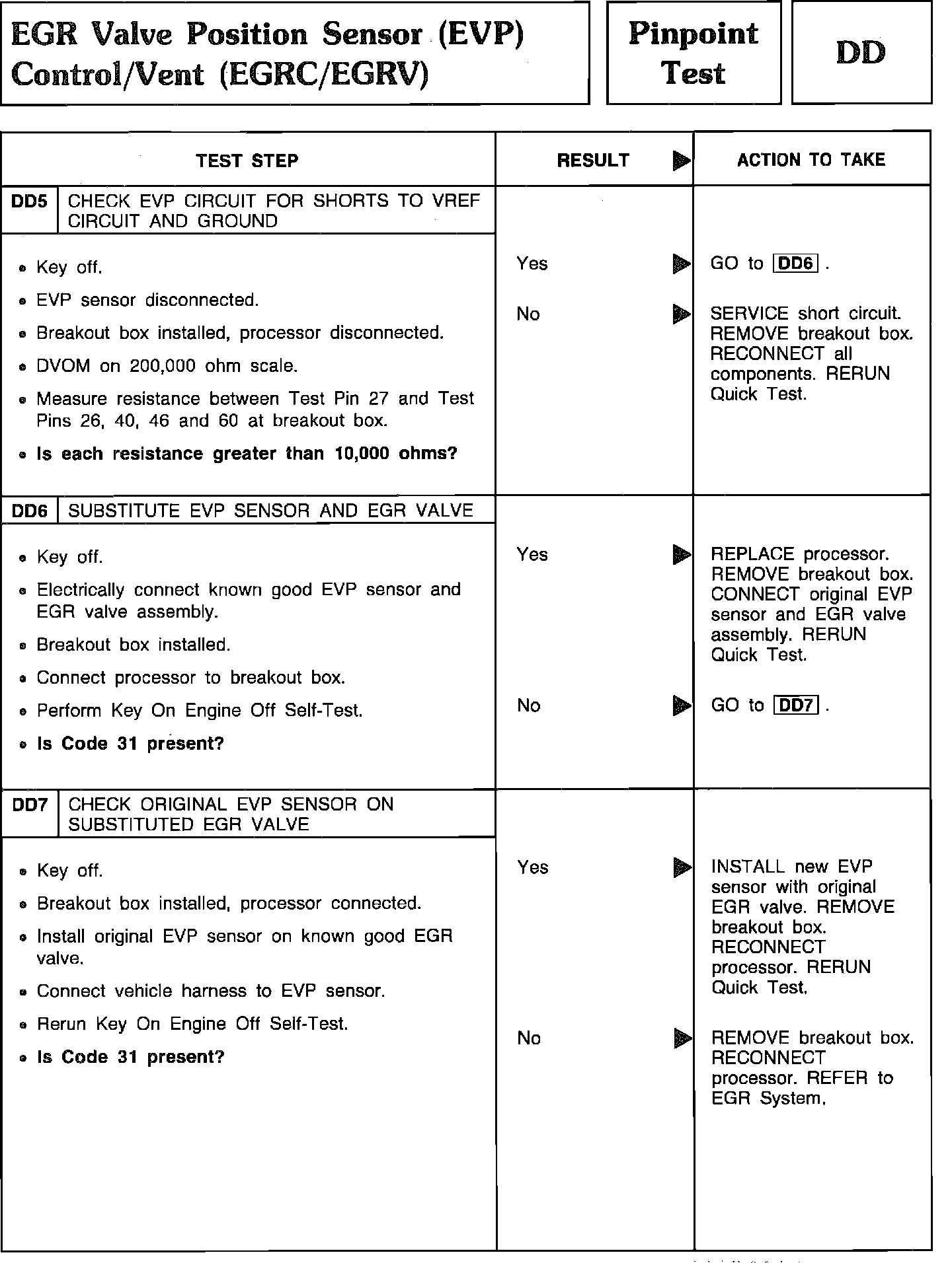 Pinpoint Test DD5 Thru DD7 - EGR Valve Position Sensor (EVP) Control/Vent (EGRC/EGRV):