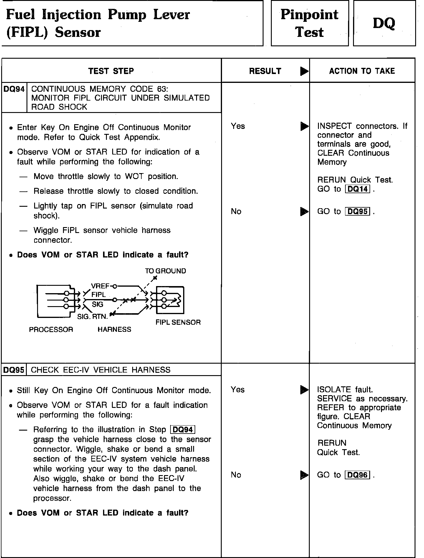 Pinpoint Test DQ94 & DQ95 - Fuel Injection Pump Lever (FIPL) Sensor: