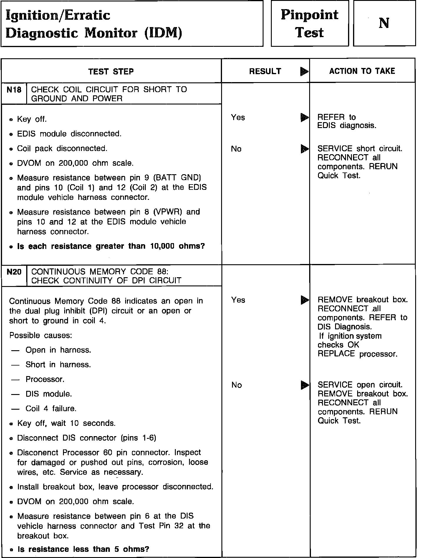 Pinpoint Test N18 & N20 - Ignition Diagnostic Monitor (IDM):