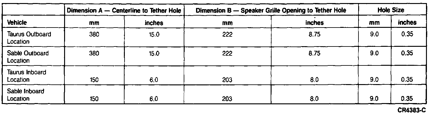 If tether anchorage hardware is required for the child safety seat but is not provided by the child safely seat manufacturer, tether anchor hardware kits can be obtained at no charge from any Ford or Lincoln - Mercury dealer. Attachment holes at each rear seating position have been provided in all vehicles.