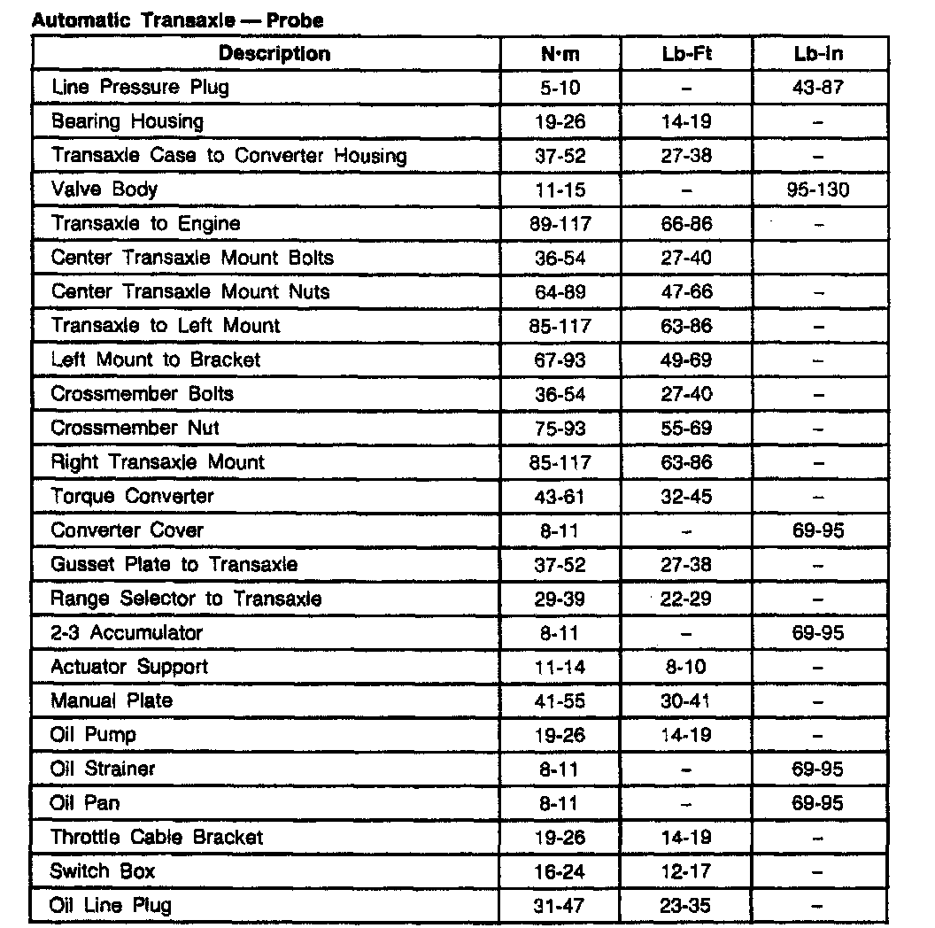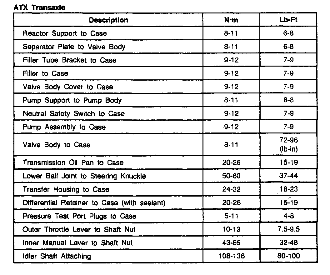 ATX 3-spd A/T, Transaxle Torque:
