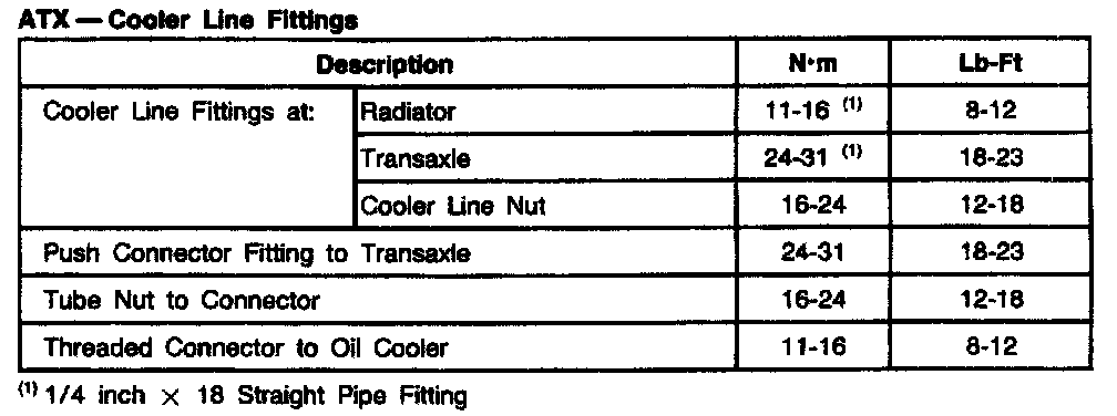 ATX 3-spd A/T, Cooler Line Fittings: