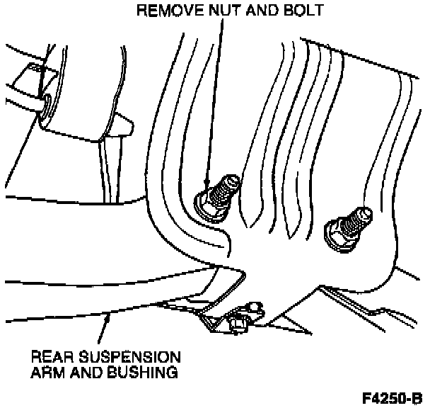 5. Remove and discard bolt and nut attaching lower rear suspension arm and bushing to center body bracket and remove rear suspension arm and bushing.