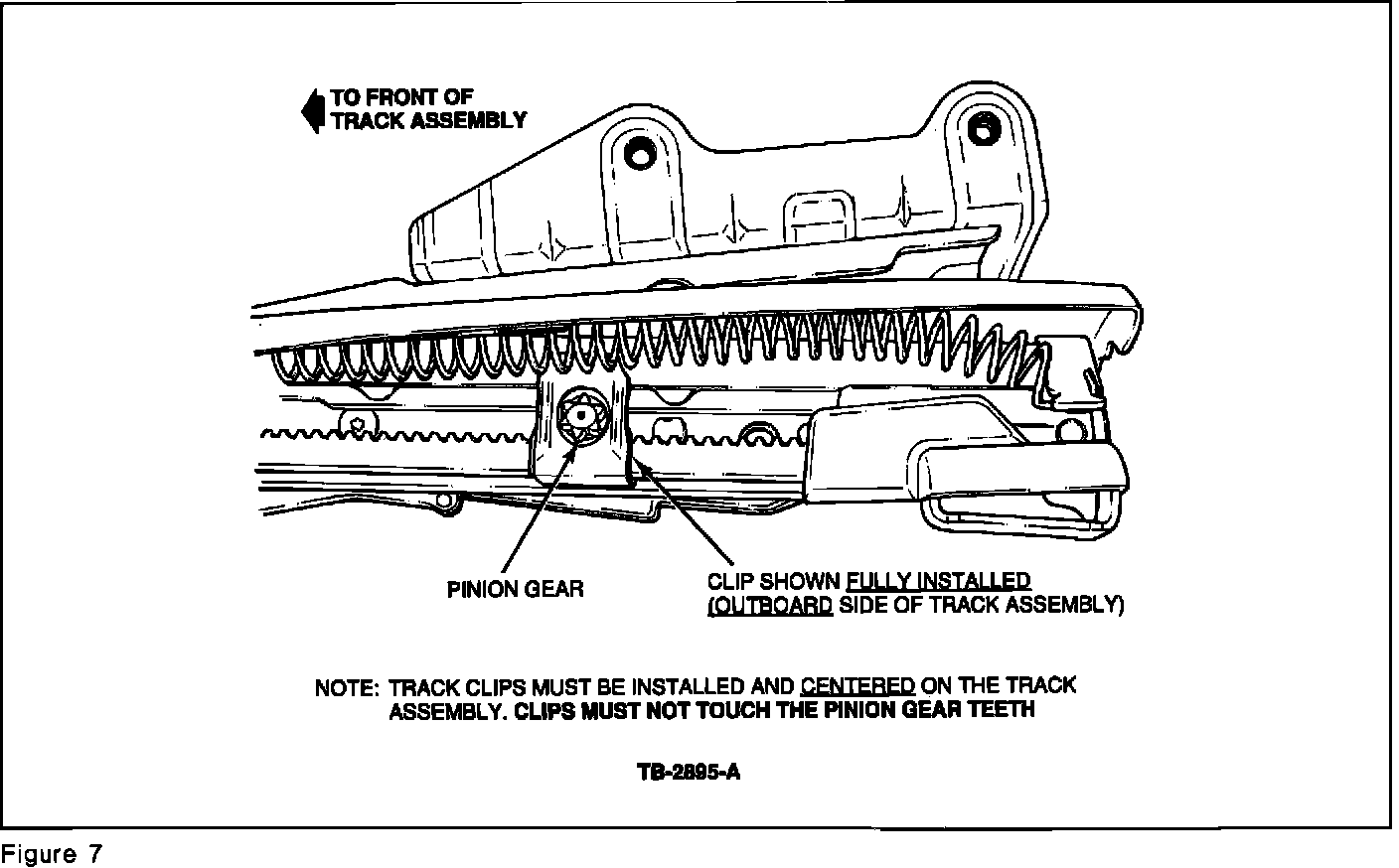 4. Install the track clips on both the inboard and outboard track assemblies. Refer to Figures 3 through 7.