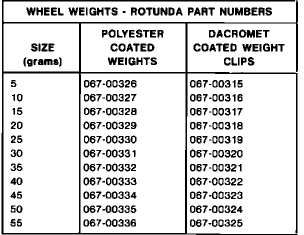 Refer to the following wheel weight charts for a description and Rotunda part number.