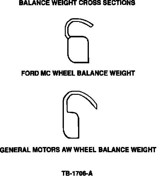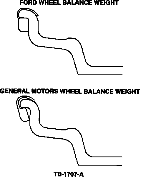 Since Ford passenger car aluminum wheels are not designed to use other manufacturer's balance weights, any mismatch will possibly allow the weight to fall off the wheel resulting in a repeat repair. To ensure retention and improve corrosion resistance, only Ford approved balance weights should be used on Ford wheels.