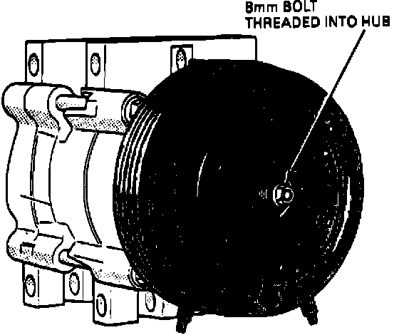 3. Remove the clutch hub retaining bolt from the compressor.