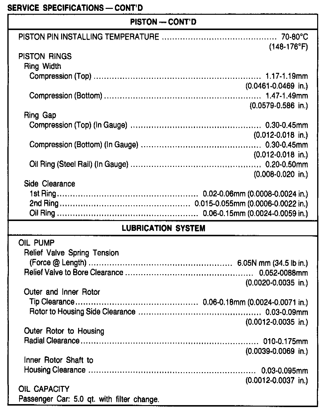 General Engine Specifications