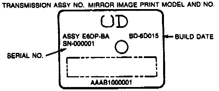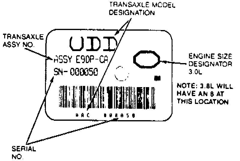 The Identification Tags, located on top of the converter housing, includes transaxle assembly number, serial number, and build date.