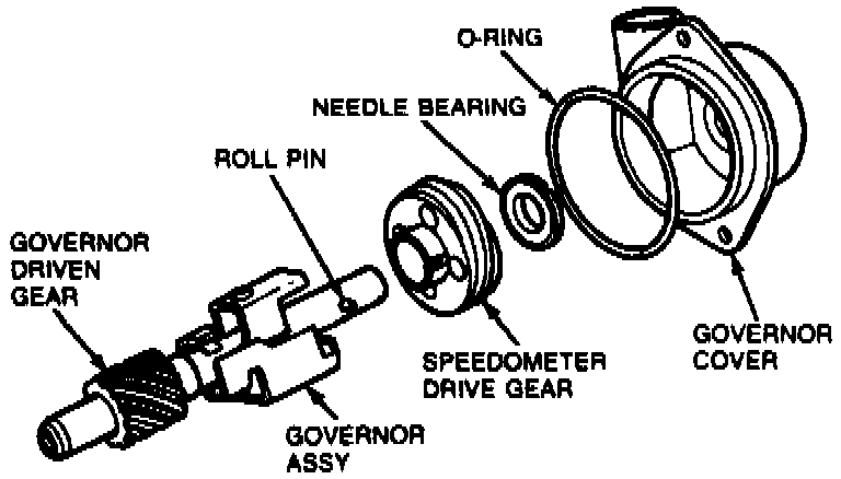 3. Remove speedometer drive gear bearing, speedometer drive gear, and governor assembly.