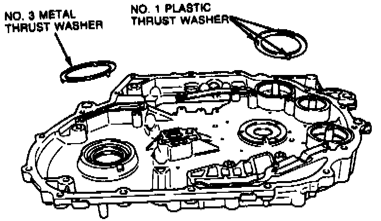 35. Remove No. 5 selective thrust washer. Thrust washer may remain on sprocket support assembly.