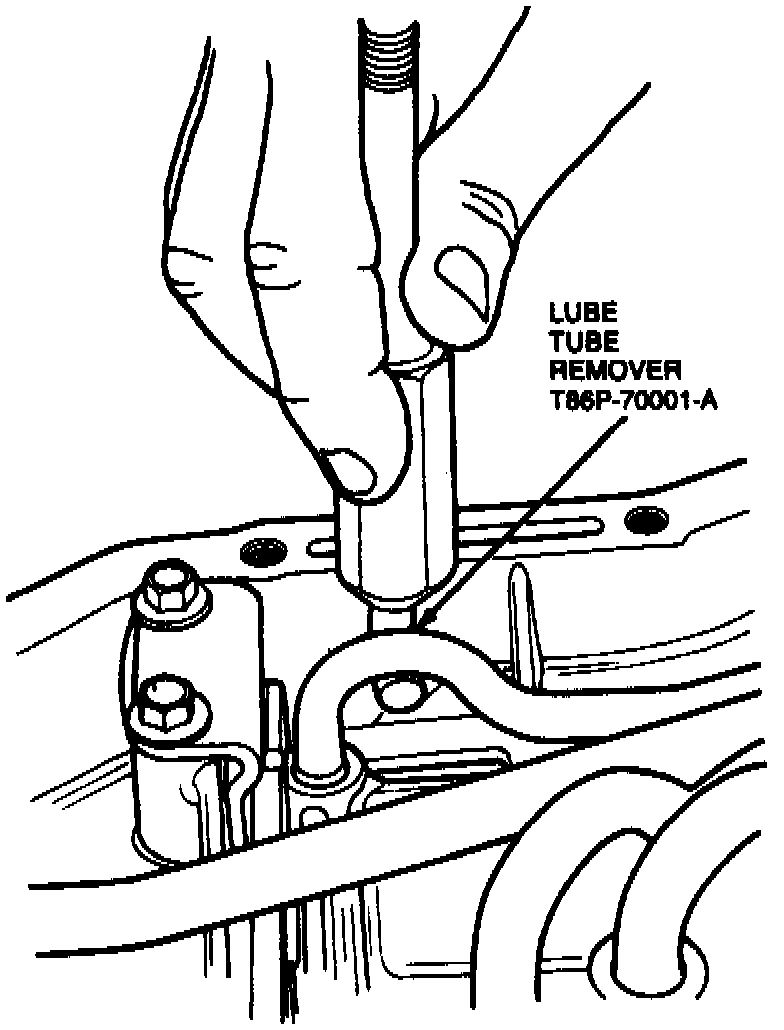 43. If necessary, remove lube tubes as shown in the Lube Tube Removal image. Tubes are held in position with Loctite.