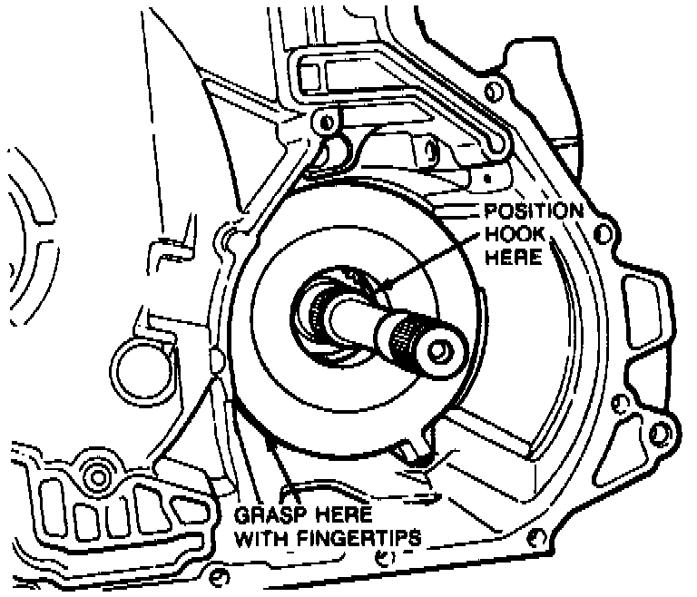 18. Push in Throttle Valve (TV) plunger, then pull oil pump and valve body assembly outward to clear throttle valve bracket