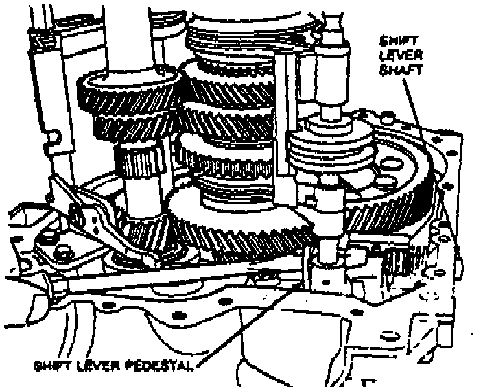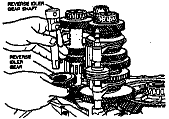 8. Remove reverse idler shaft and idler gear by lifting shaft upward.