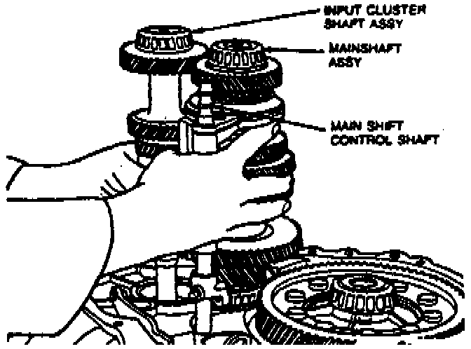 11. Remove mainshaft, input cluster shaft and main shift control shaft as an assembly.