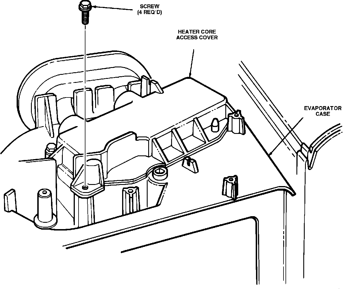 5. On all models, remove heater core cover attaching screws, then the cover and seal.