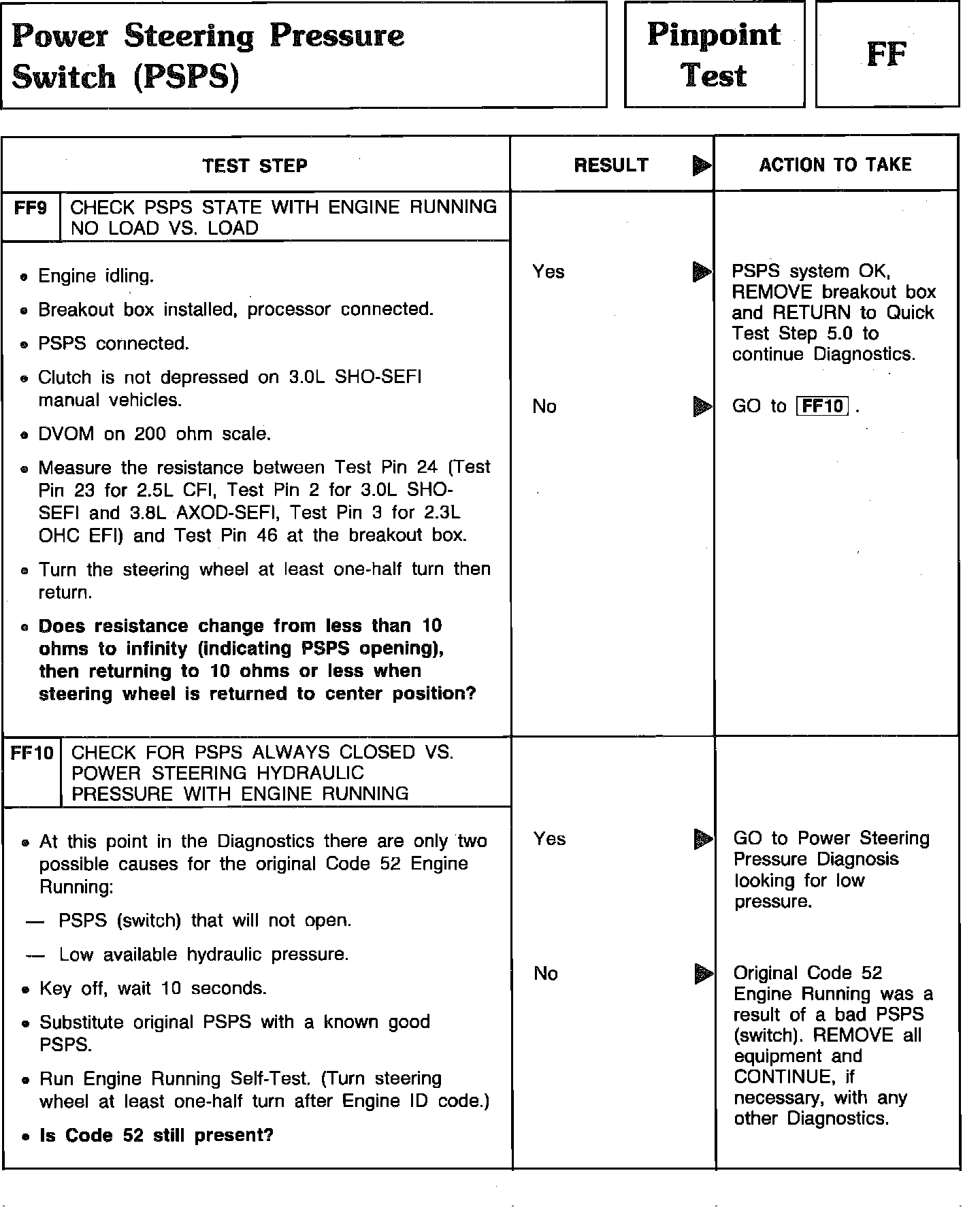 Pinpoint Test FF9 & FF10 - Power Steering Pressure Switch (PSPS):