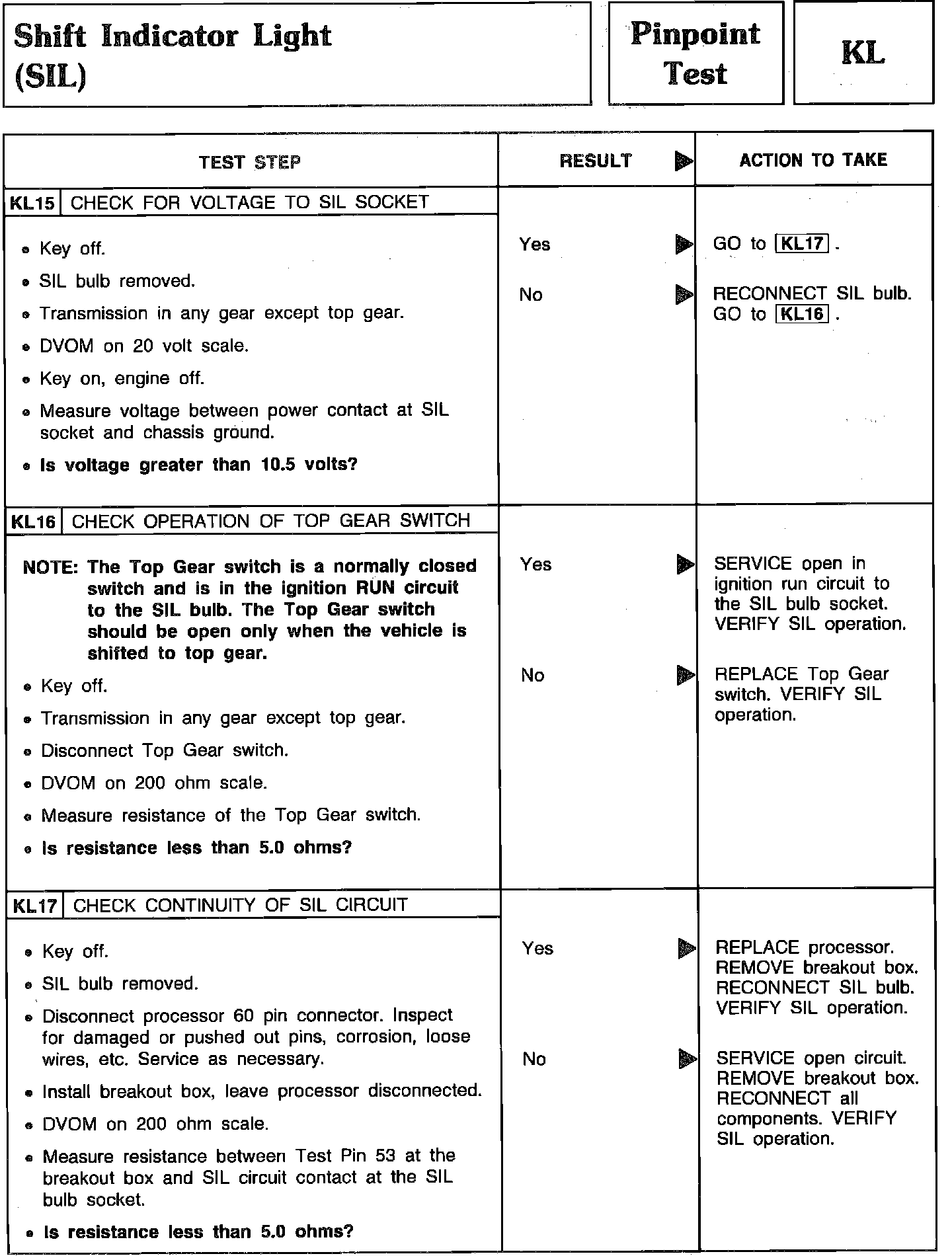 Pinpoint Test KL15 - KL17 - Shift Indicator Light (SIL):