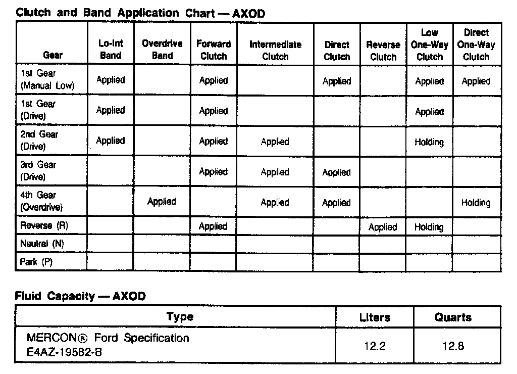 AXOD 4-spd A/T, Clutch And Band Application: