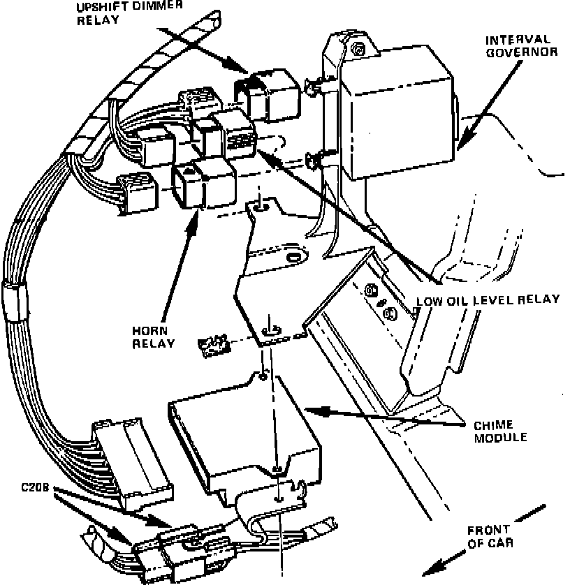 The Windshield Wiper/Washer Interval Governor is located behind the center of the Instrument Panel, on the Instrument Panel brace.