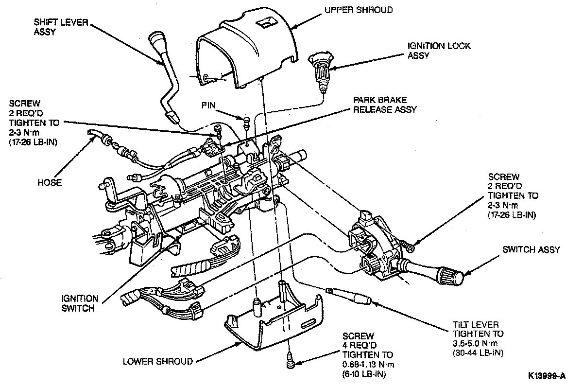 2. If so equipped, tilt column to lowest position and remove tilt lever.