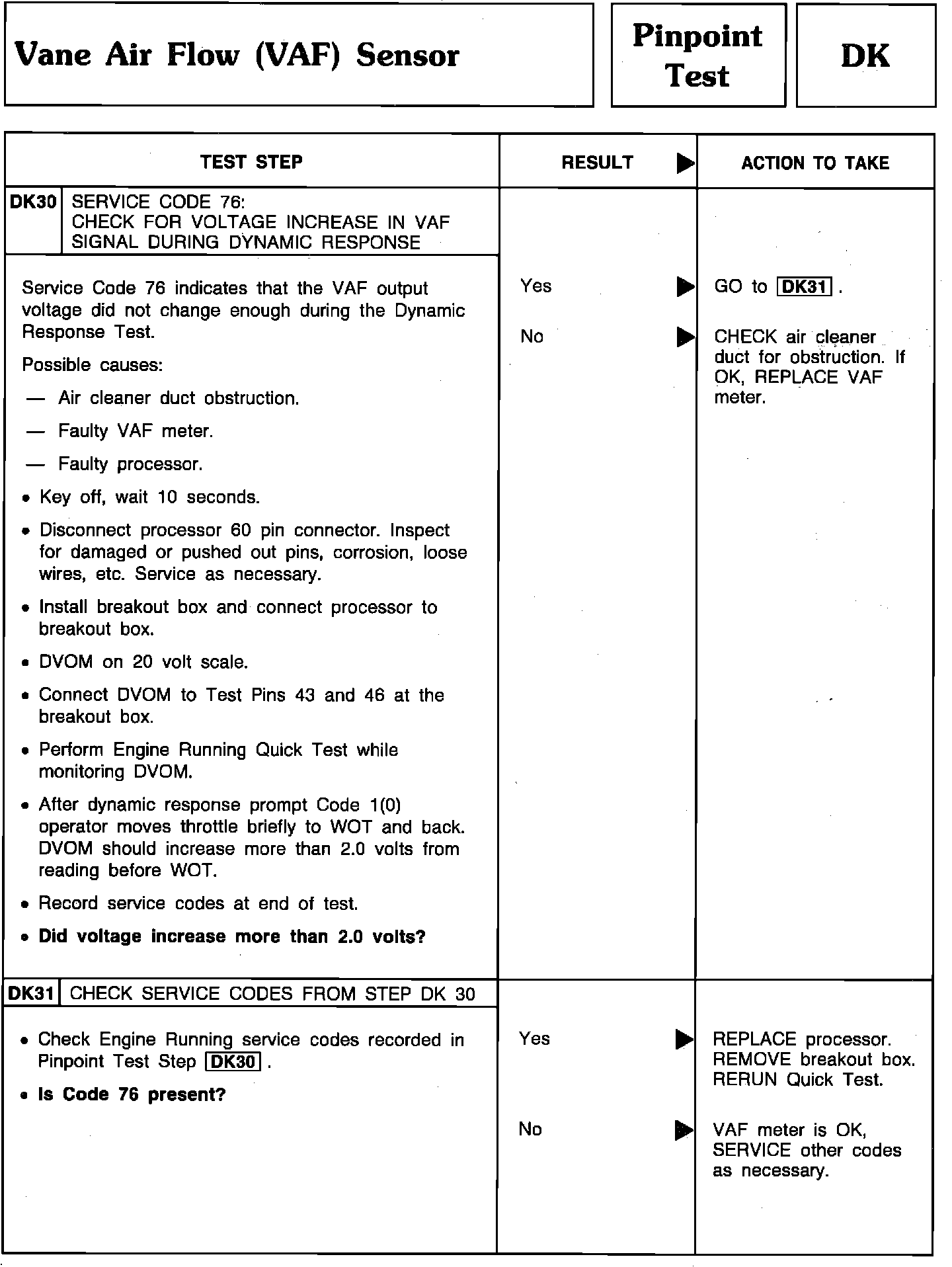 Pinpoint Test DK30 & DK31 - Vane Airflow Sensor (VAF):