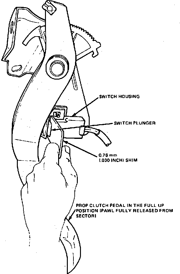 3. Slide switch forward toward clutch pedal until switch plunger cap is .30 inch from contacting switch housing, then tighten attaching screw.