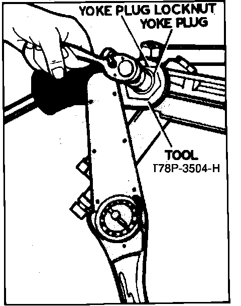 4. Loosen yoke plug locknut using tool No. T78P-3504-H, or equivalent, then loosen yoke plug using a 3/4 inch socket wrench, Fig. 7.
