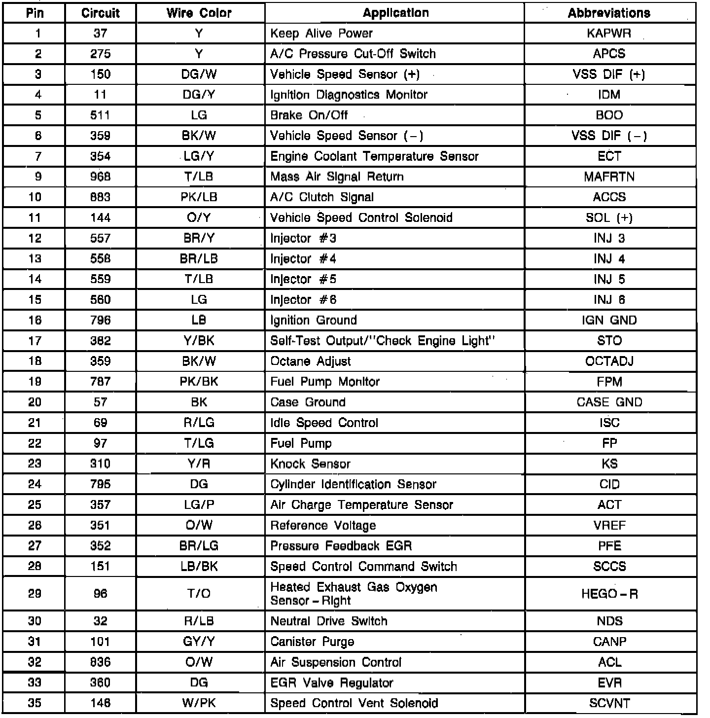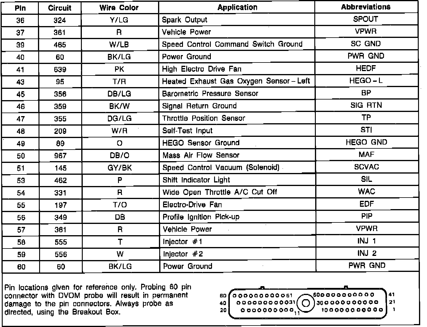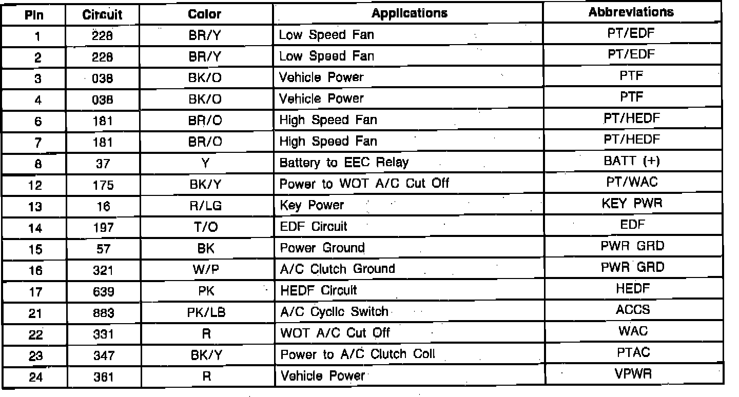 EEC-IV Module Connector Pin Usage: