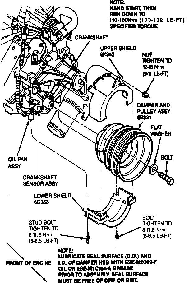 CAUTION: This is a critical torque. Over tightening fasteners can cause damage to the timing sensor.