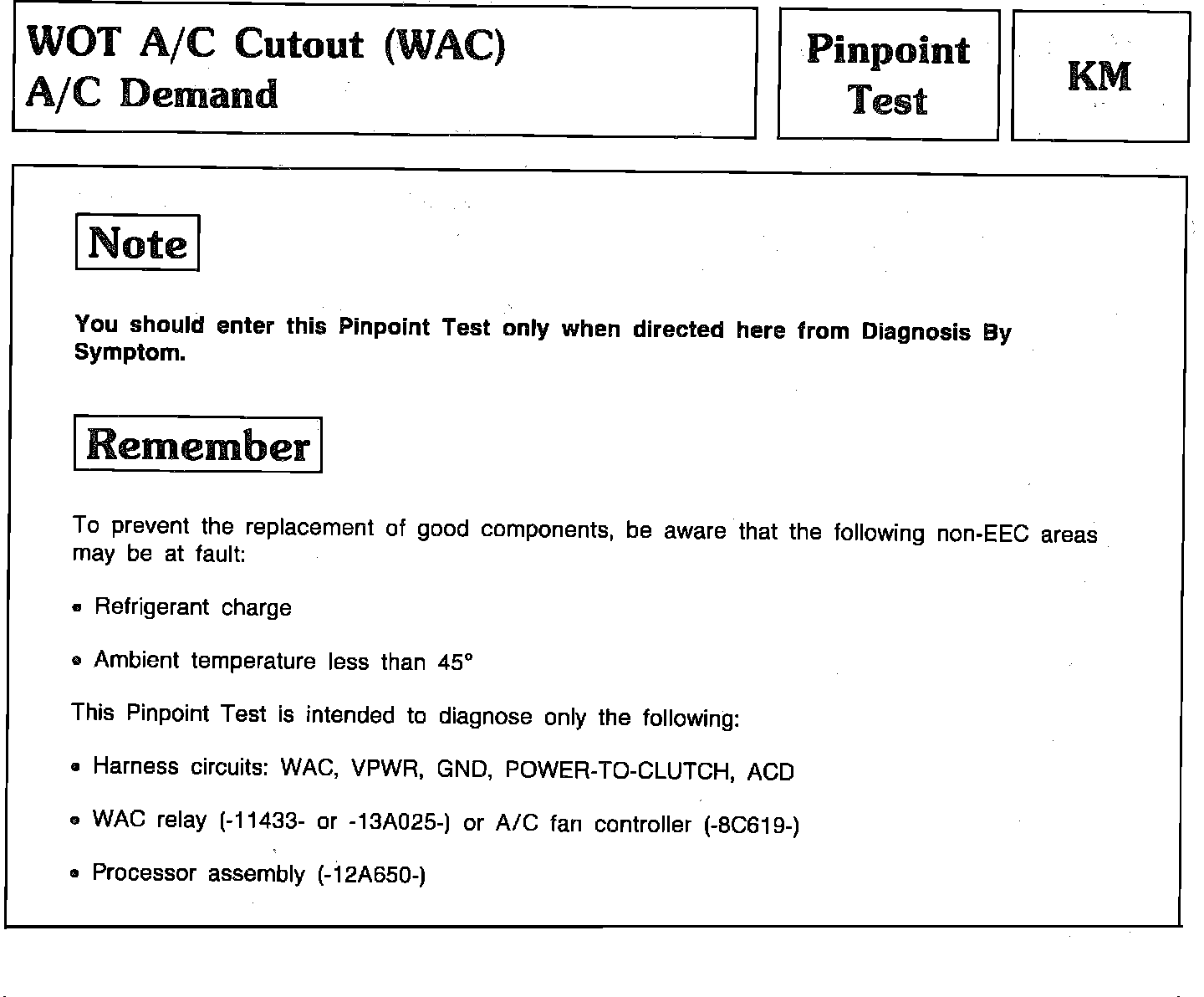 Pinpoint Test KM - WOT A/C Cutoff (WAC) A/C Demand: