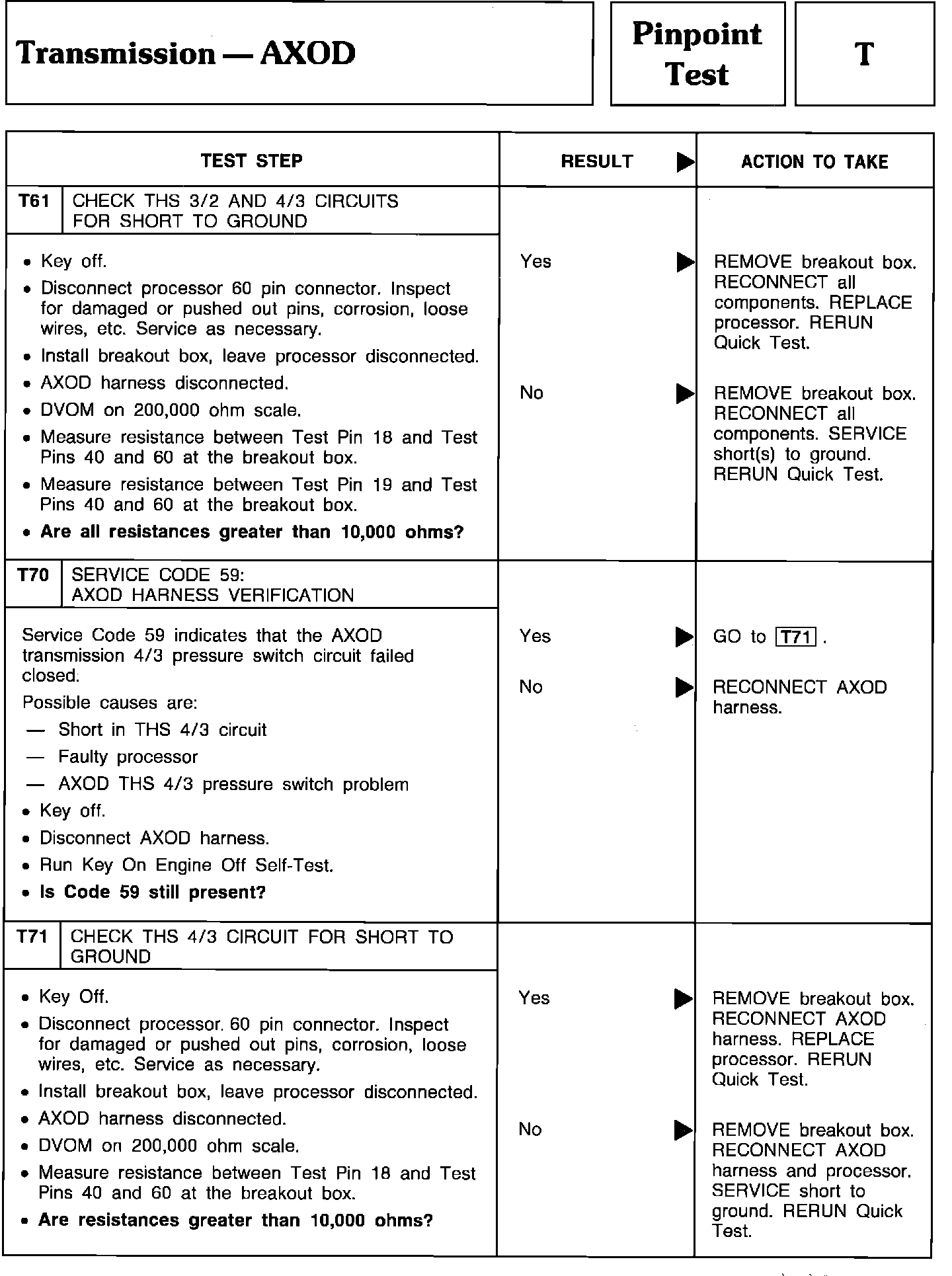 Pinpoint Test T61 Thru T71 - Transmission-AXOD: