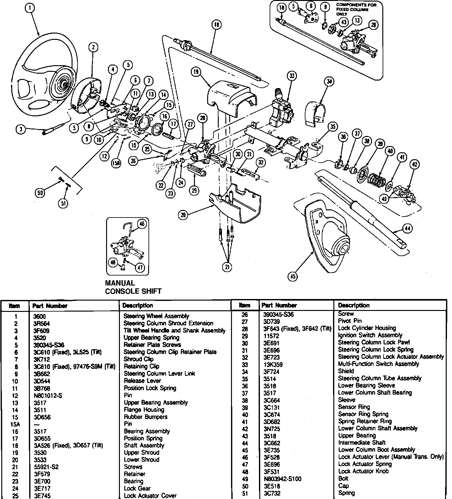 Fig. 5 Steering Column Exploded View: