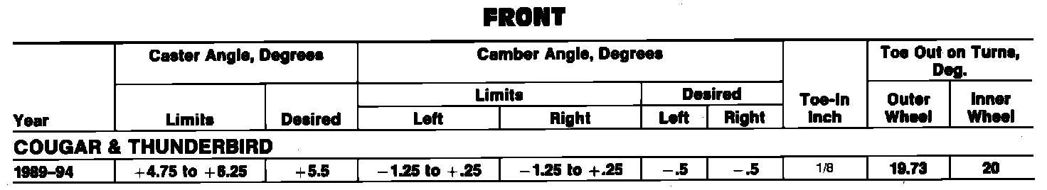 Wheel Alignment Specifications: