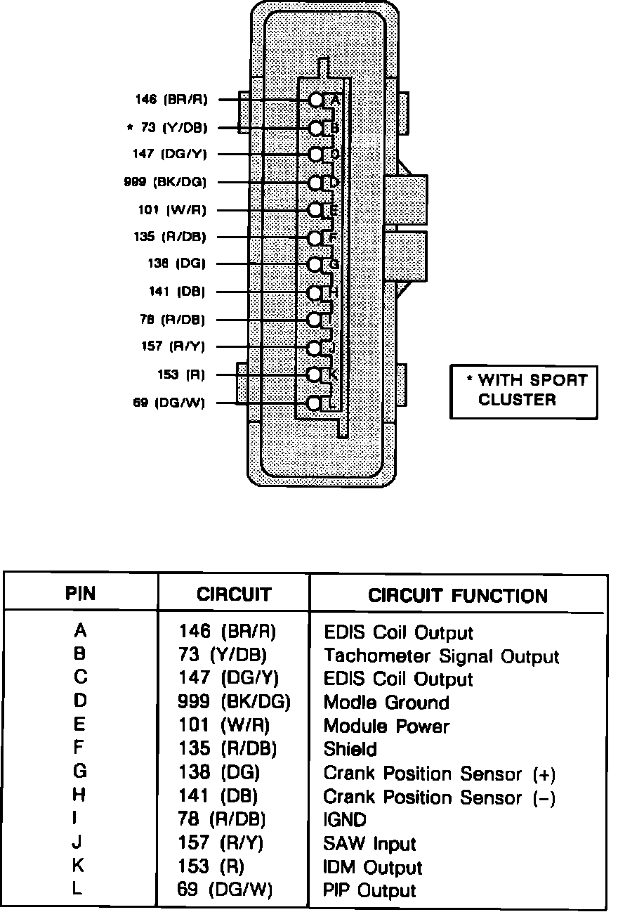 Electronic Distributorless Ignition System (EDIS) Module Connector: