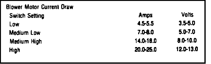 Fig. 44 Blower motor current draw & voltage test chart.: