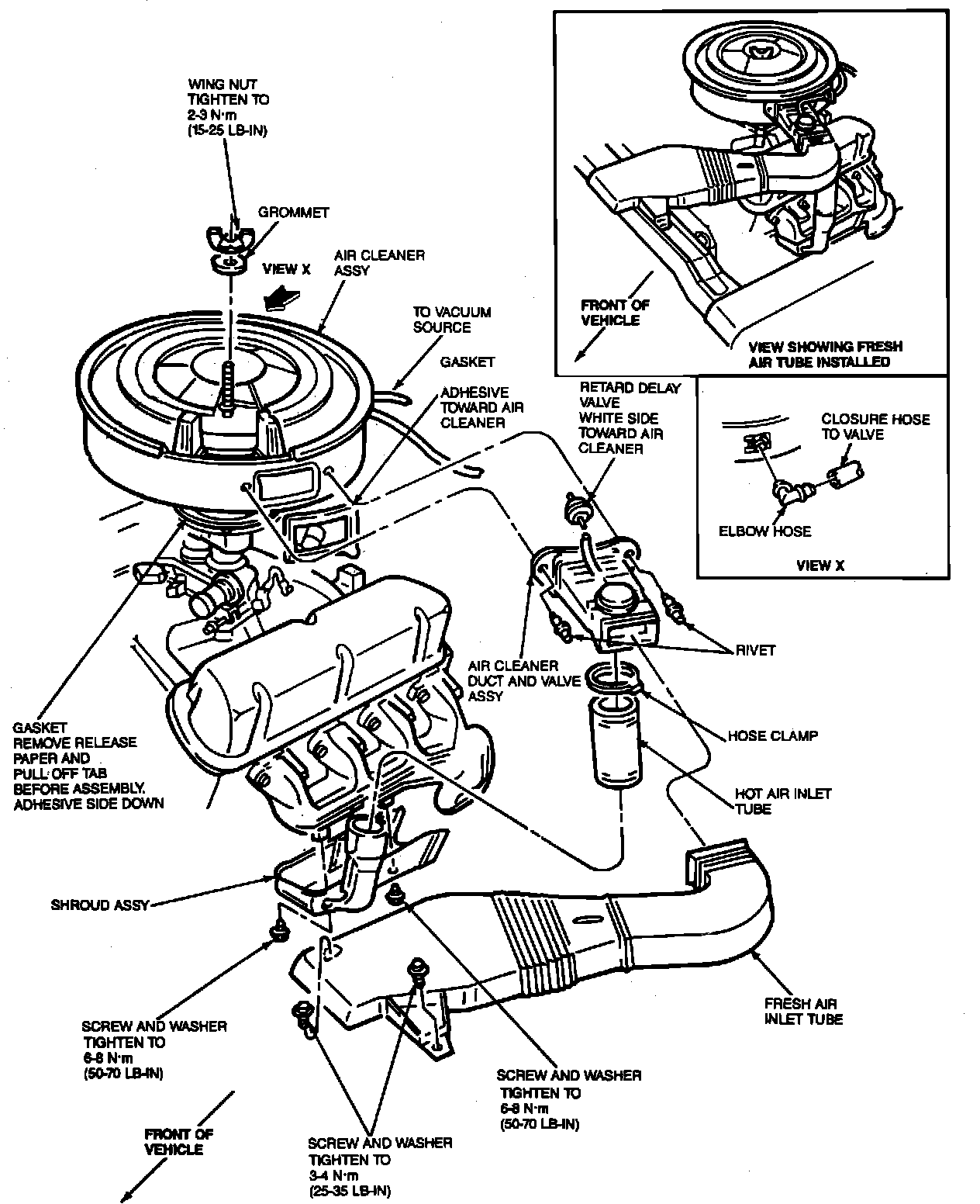 2. Remove the fresh air inlet tube. Inspect the heated air duct for proper installation and/or damage. Service the duct if needed.