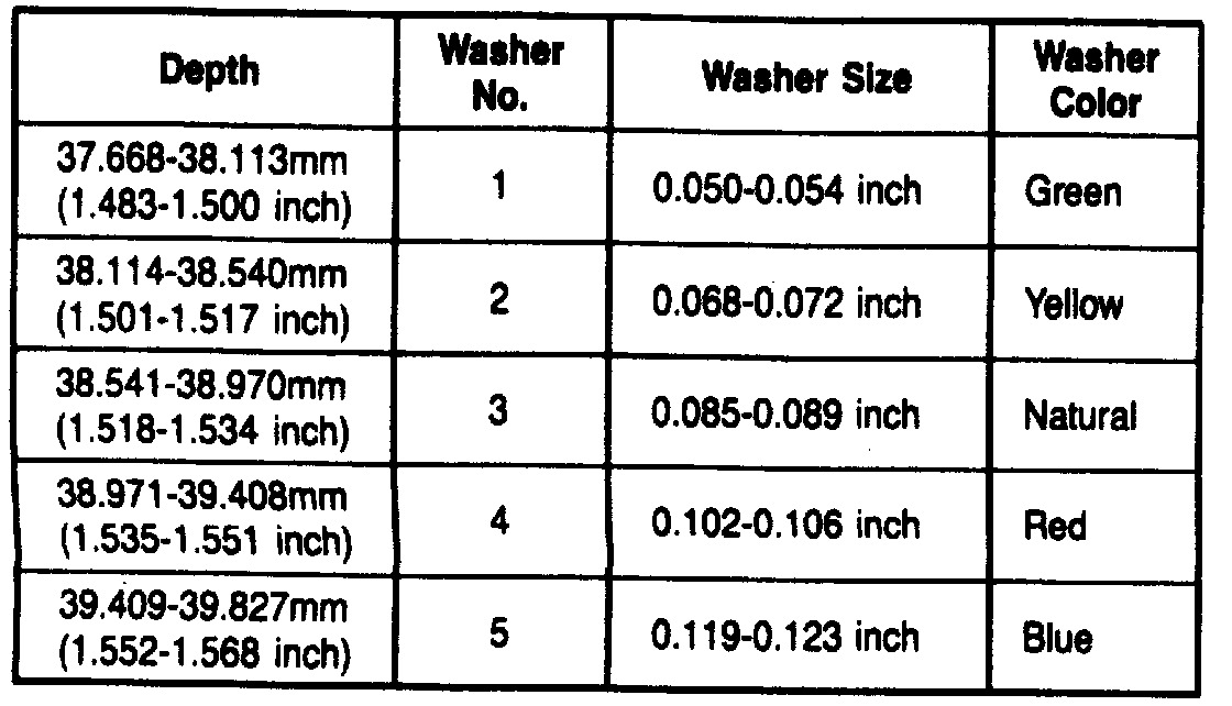 21. If average depth is not 1.629-1.640 inches for 3.8L engine applications or 1.634-1.646 inches for other applications, install correct separator plate and recheck clearance. Selective steel separator plates are available in inch thicknesses of 0.067 -0.071, 0.077-0.081, 0.087-0.091, and 0.097-0.101.