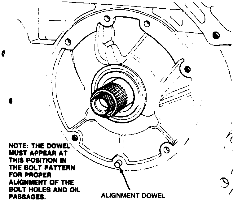 27. Remove alignment dowel and install pump attaching bolts, torquing alternately a few turns at a time.