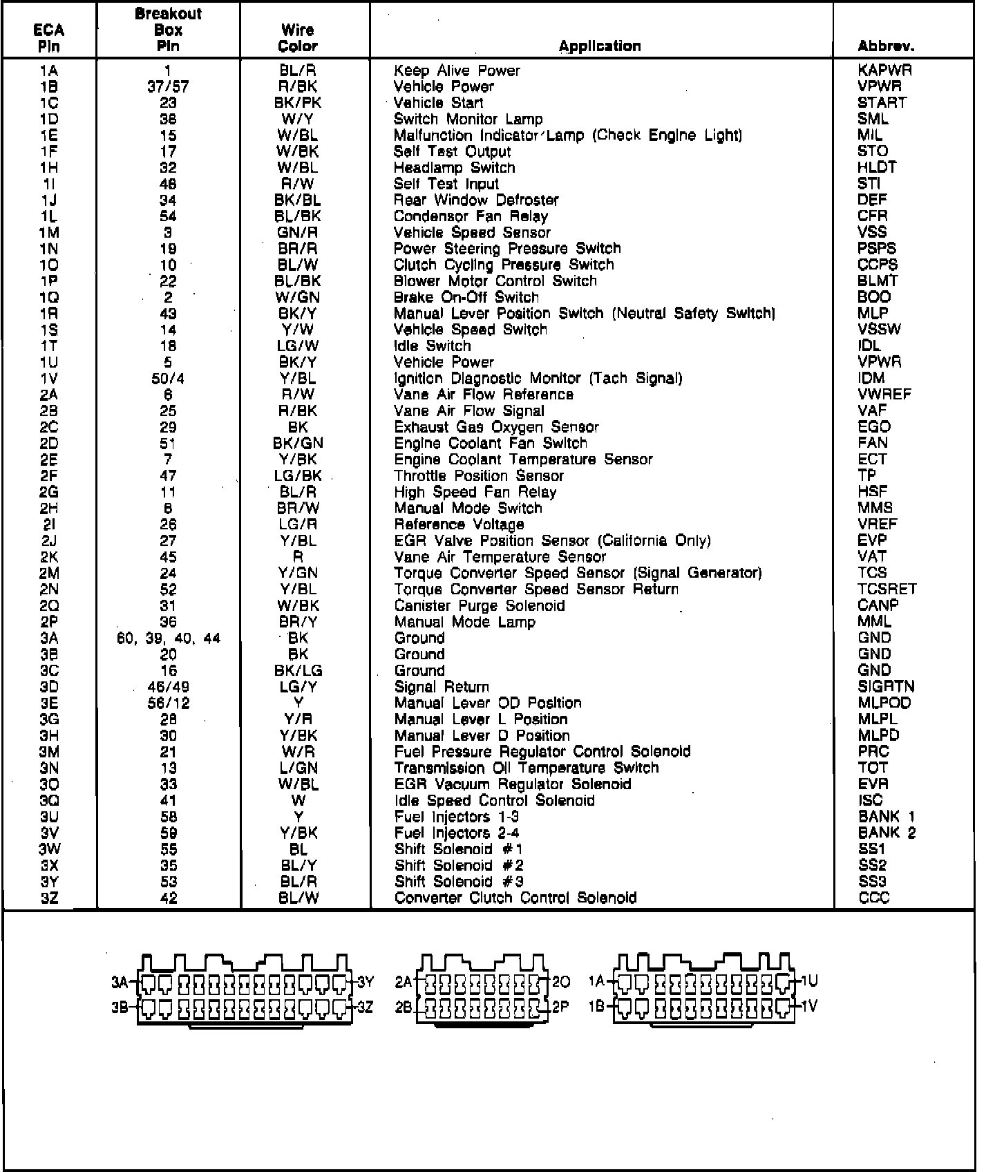Electronic Control Assembly (ECA) Connector Pin Identification Non-Turbo (ATX):