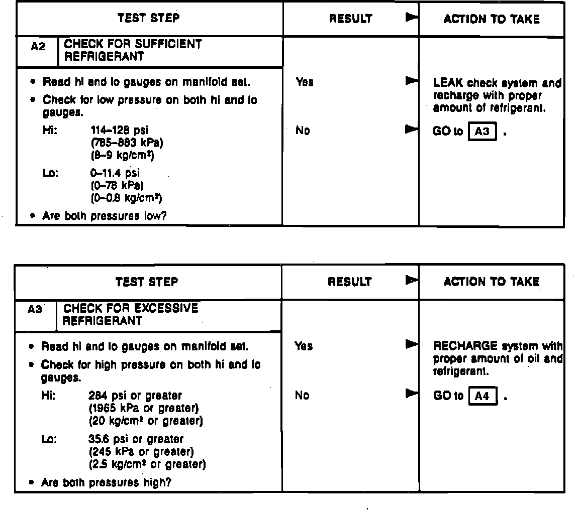 Fig. 13 Insufficient A/C cooling diagnosis (Test A2 & A3):