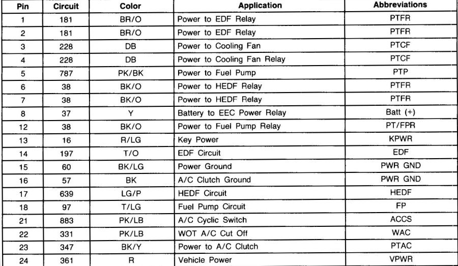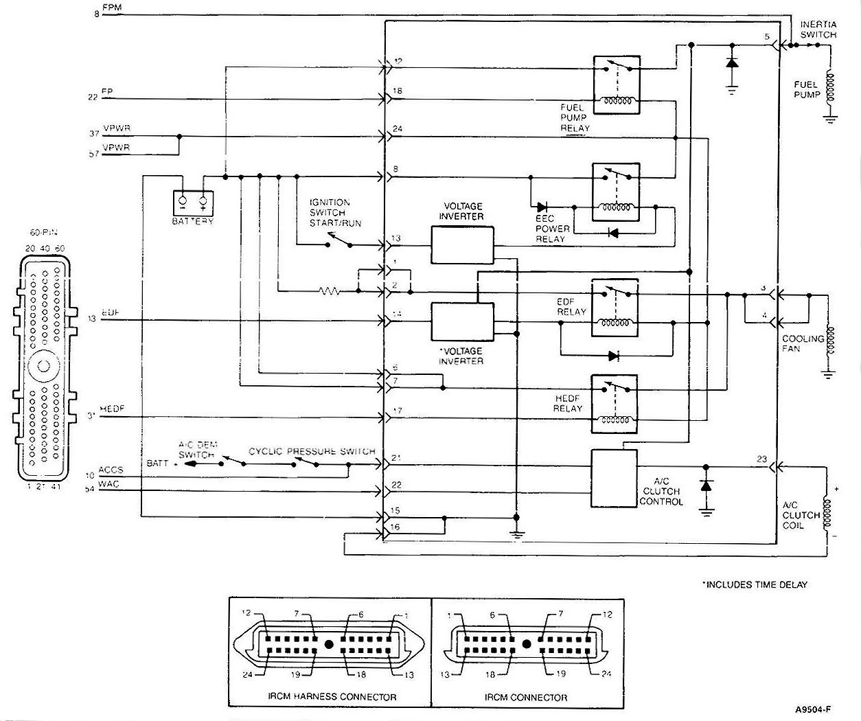The Integral Relay Control Module (IRCM) interfaces with the EEC-IV processor to provide control of the cooling fan, A/C clutch, and the fuel pump.