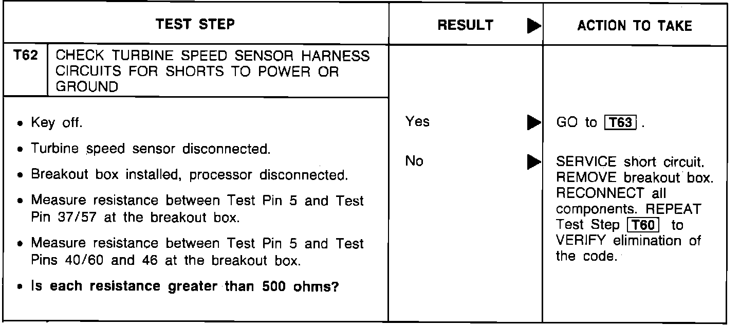 T62 - Check Turbine Speed Sensor Harness Circuits For Shorts