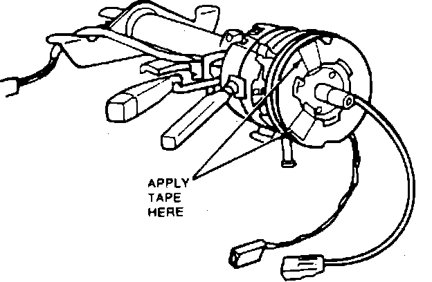 5. Disconnect airbag slip ring connector from column harness. Before removing airbag clockspring type slip ring from steering shaft, clockspring must be taped, Fig. 65, to prevent clockspring rotor from being turned accidentally and damaging clockspring.