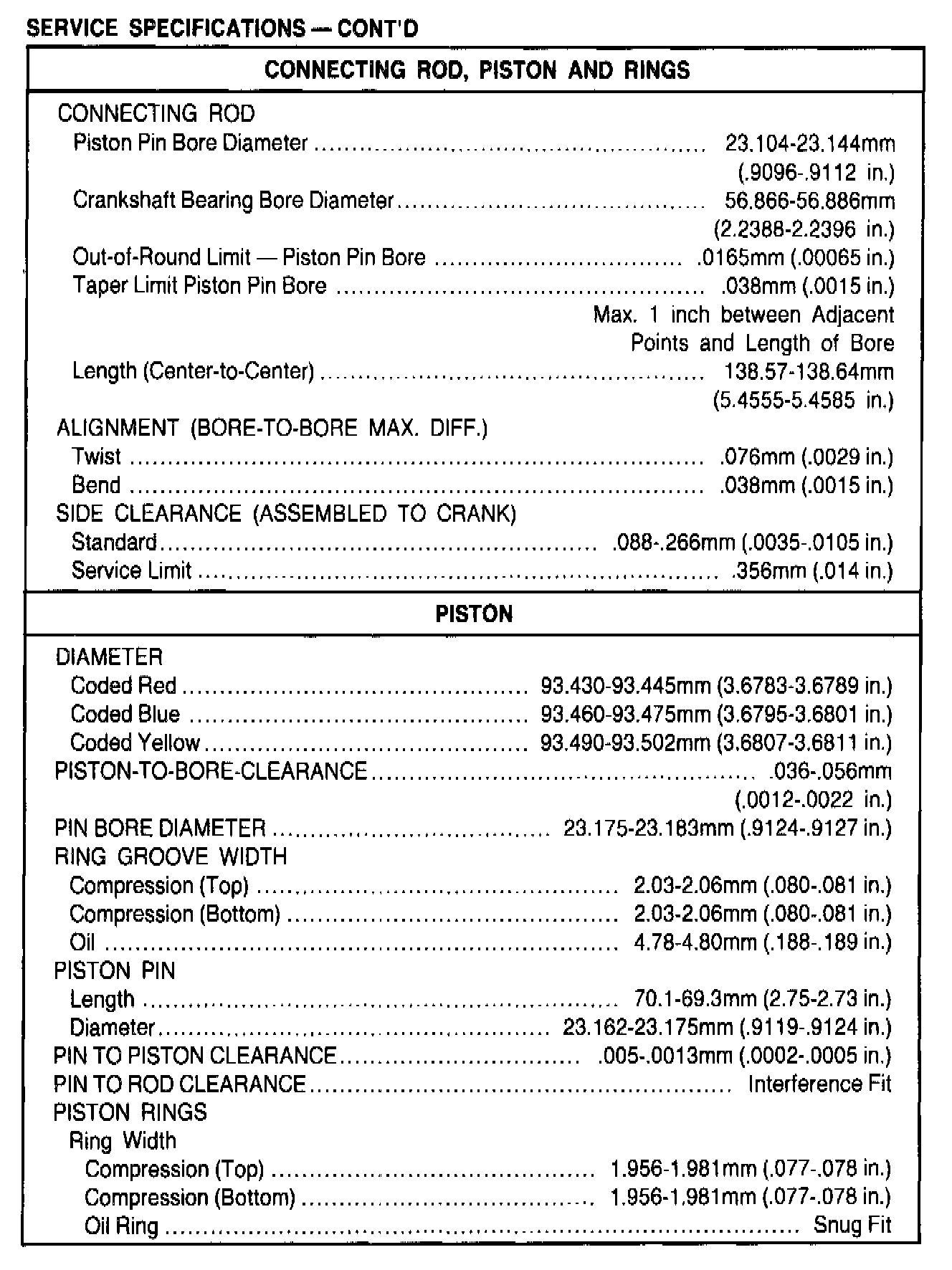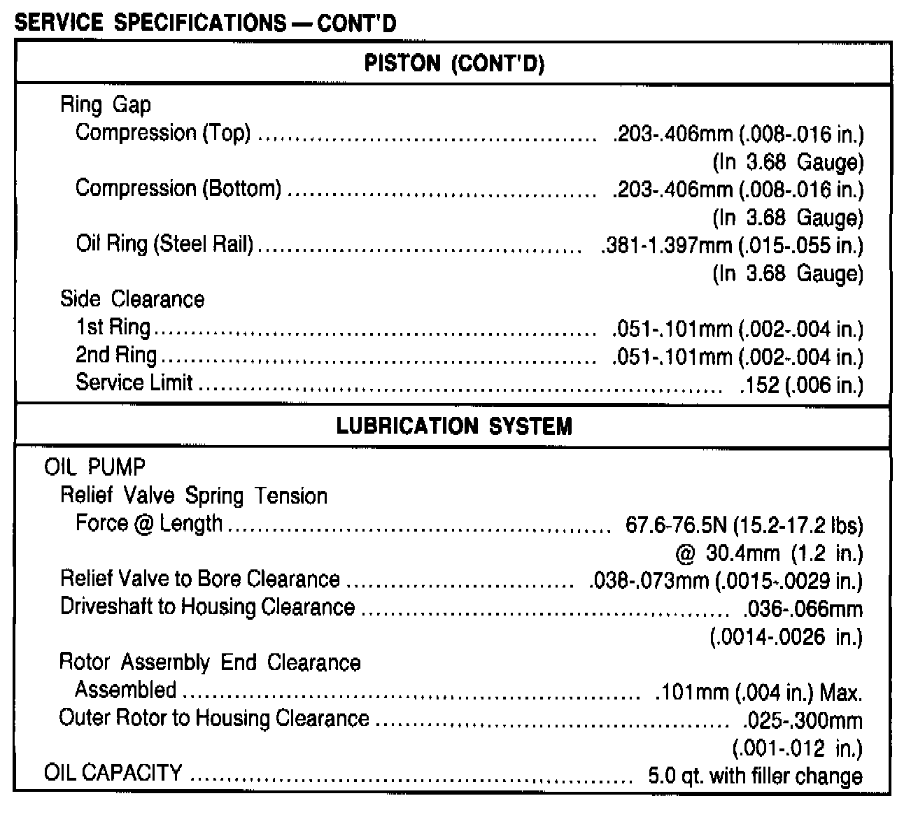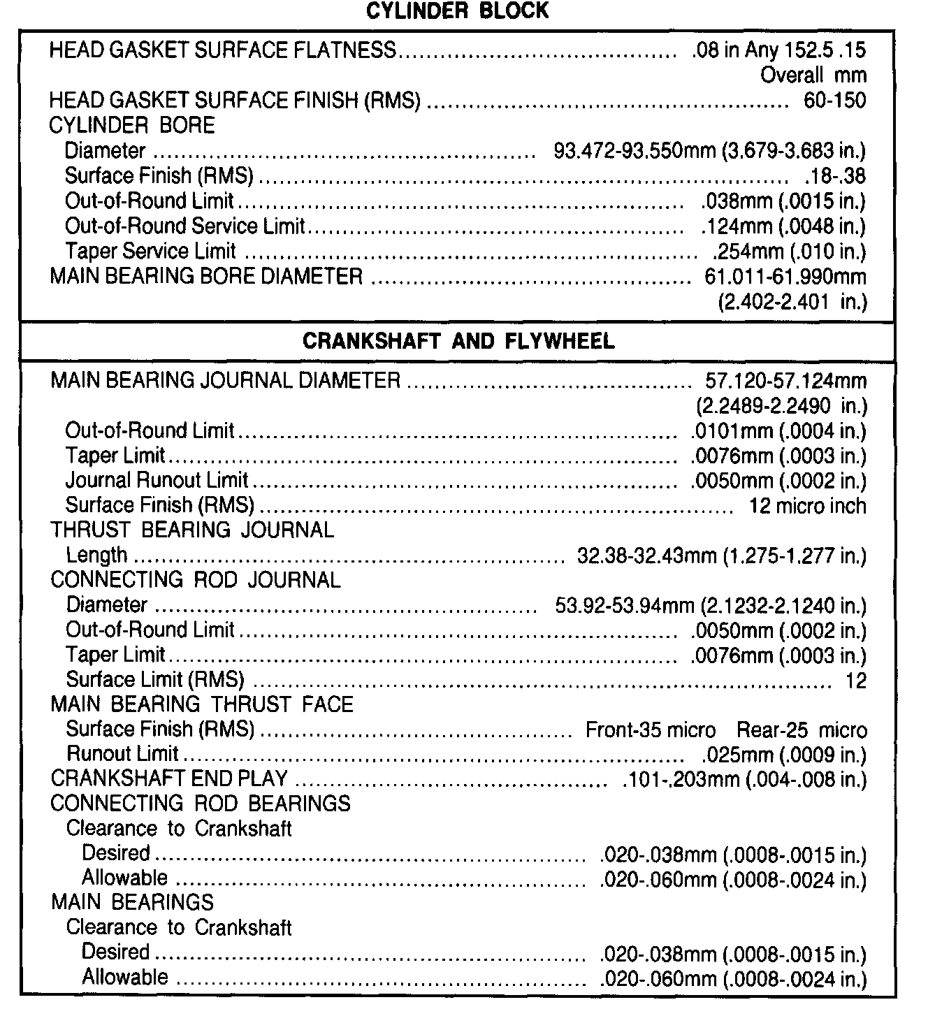 General Engine Specifications