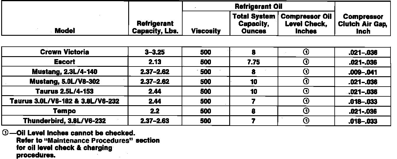A/C Data Table: