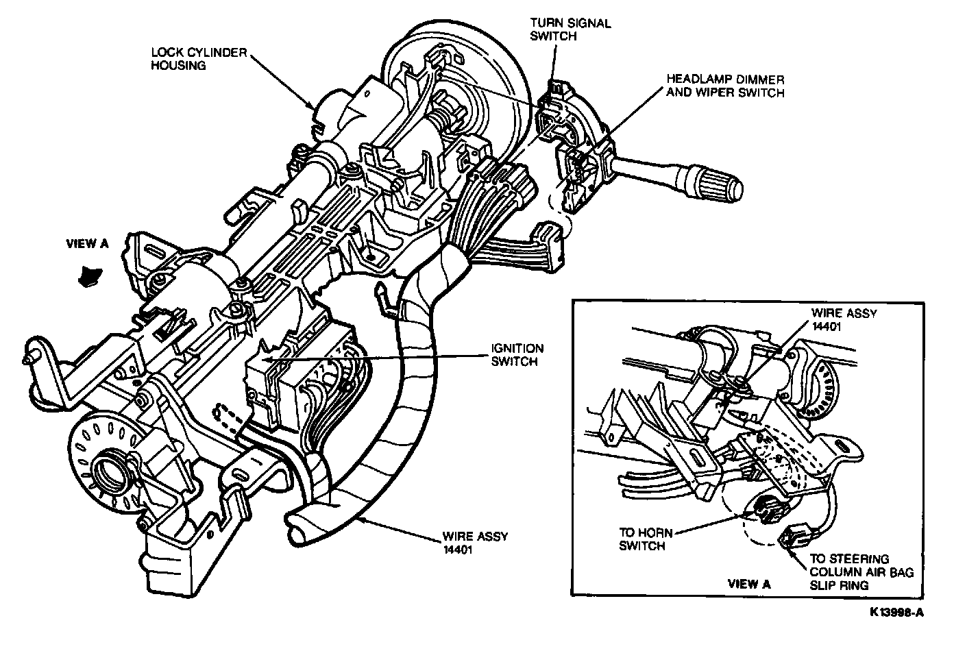 5. Remove steering column trim shrouds. Disconnect all electrical connections from steering column switches.