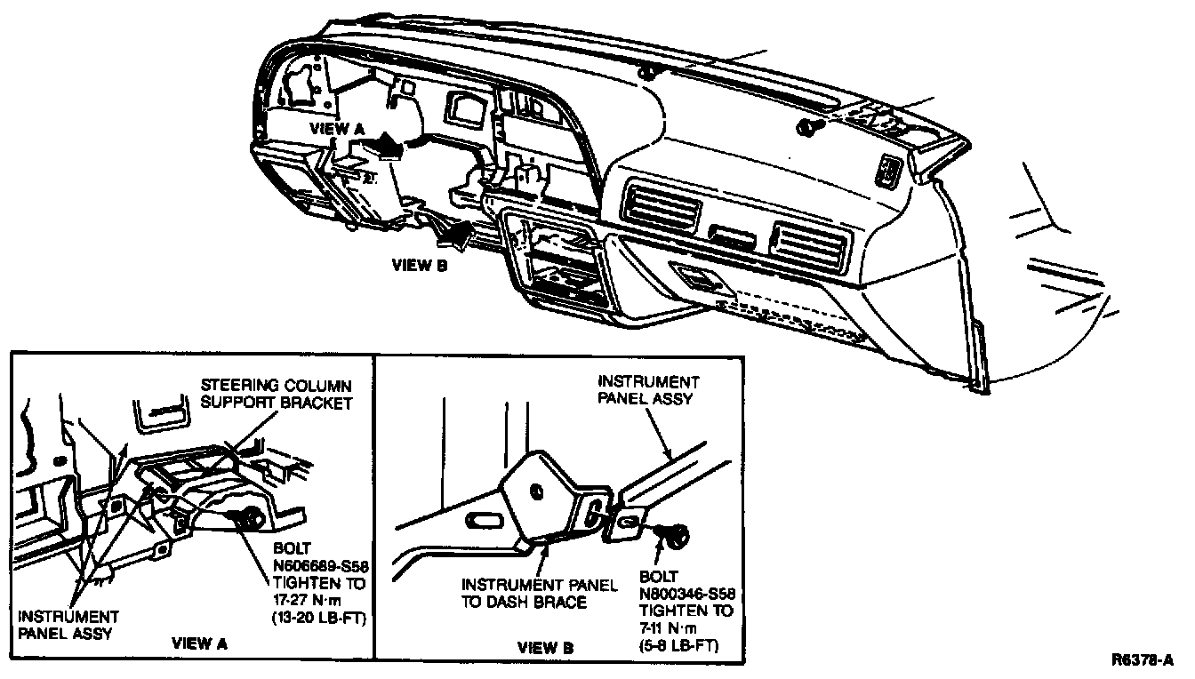 12. Remove one bolt at steering column opening attaching instrument panel to brace.